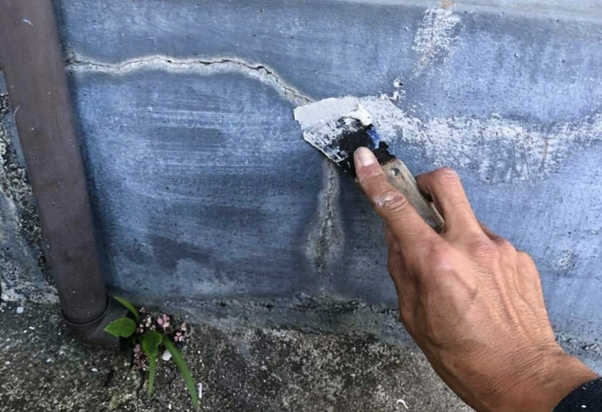 下地補修として、ひび割れ(クラック)にはシーリングやパテ、モルタルなど適切な補修材が使われます。