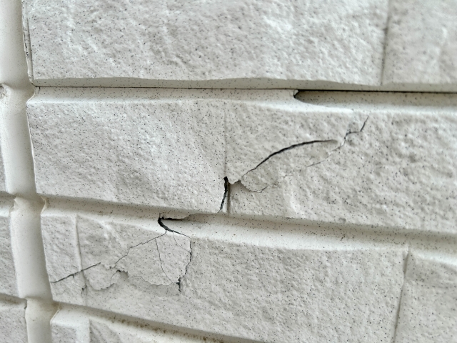 建物全体が揺れたり歪んだりすると、外壁材に大きな力がかかり、亀裂が生じます。