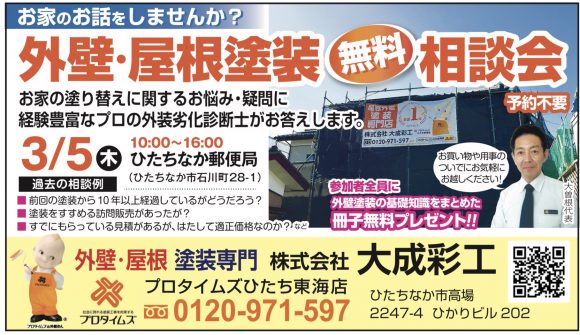 3月5日(木)ひたちなか郵便局✨屋根・外壁塗装✨無料相談会 |